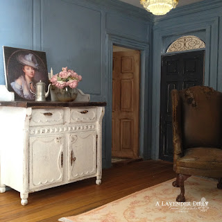 I love the way the light fitting in the bathroom came out. A bent brass stamping, blue glass bead and a large bead cap. I ran the wires up the wall and painted over them white. I was working on a way to hide the wire till I looked up in my own work room. My house was built before power and made from timber so no wall cavities to hide wiring. So when lights etc were finally added during the 50's all the wiring was run along skirting boards, cornice and up the walls etc and just painted over. I did the same here. One of those 'oh why didn't I think of that before and save myself so much headache' moments.